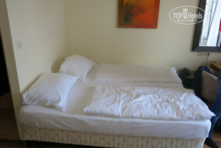 Хороший номер, новое и чистое постельное белье. Двуспальная кровать оказалась двумя односпальными сдвинутыми вместе. Есть шкаф для вещей, куча полочек. Сейф есть, за него надо дать депозит 20 евро (потом их возвращают). Плотные шторы на окнах. Есть выход на большой балкон (вид красивый). Ванная просторная, с душевой кабиной. С полотенцами нет проблем, убирались и добавляли новые полотенца. Есть мощный фен и гель для тела и волос. В стоимость номера входит завтрак, сервируется с 6-30 утра. Кофе, чай, соки, молоко, сливки, сыр, колбасы, ветчина, хлеб, мюсли, горячий омлет. Каждый найдет что то по душе. Каждый раз при выходе из отеля ключ надо оставлять на ресепшн. В отеле много русских. В 30 метрах от отеля за углом многоуровневый паркинг за 6 евро в сутки. Супер! Посоветую останавливаться в этом отеле в зимние месяцы (комфортно и тепло).
