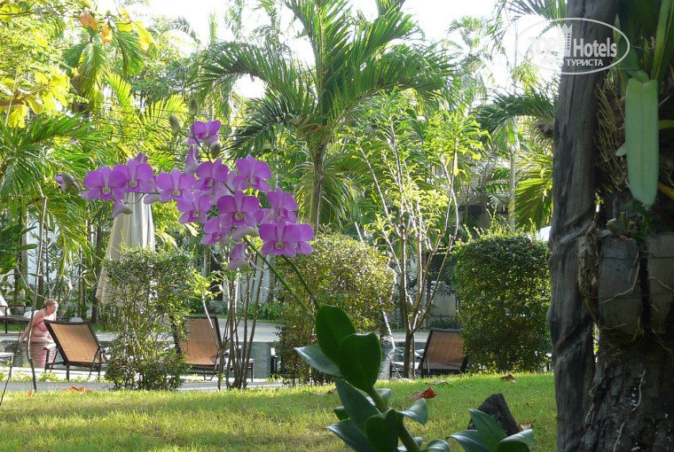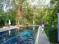 Семей с детьми (от грудничков до подростков) вообще очень много. Само место полностью располагает для детского отдыха. Отель весь в зелени, которая очень хорошо поглощает жару, терраска нашего номера от дорожки очень плотно защищена ухоженной растительностью, но при желании через кустики можно легко перелезть, не пользуясь входной дверью, и попасть в бассейн, пройдя 5-7 метров. Приватности на терраске вполне предостаточно, никакого ощущения бродвея от небольшой дорожки, проходящей вдоль, нет. Мы там частенько обедали или сидели по вечерам с пивком, тайским ромом или просто чаем и фруктами.