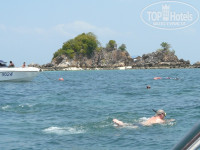 С ребенком далеко не рискнули, хотя видели ребят, которые с совсем с малышами и на Симиланы ездили. Мы были на островах Кхай, брали в палатке слева от входа на пляж. Дорога не утомительная, до порта правда час ехали из-за пробок, а на катере минут 15, штормило, волны были метра 2-3, страшновато, но больше за ребенка. Подростки были в восторге от бултыхания лодки вверх-вниз, а наш вцепился в папу и вытаращив глаза затих. Но на островах море спокойное, рыбок много, их прикармливают и они плавают прямо вокруг тебя, так что рассмотреть можно даже лучше, чем в Египте. Черепах, к сожалению, не видели. Весь инвентарь для снорклинга выдают бесплатно под роспись, маски хорошие, можно не покупать. Там же нас покормили, назад плыли уже по спокойному морю.