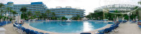 Расположен отель удобно. Фасад выходит на улицу, где расположено большое количество магазинов и кафе. До пляжа рукой подать. Пройдя один квартал выше попадаешь на улицу где ходят автобусы, на этой же улице расположен продуктовый супермаркет. Переживали, что в номере выходящем окнами на улицу будет шумно, но оказалось, что движение транспорта на ней очень небольшое. Находящийся неподалеку музыкальный фонтан слышен не сильно да и звучит не допоздна. Тем не менее однажды утром меня таки разбудил шум от работающих газонокосилок – по утрам подстригают газоны, но не каждый день.