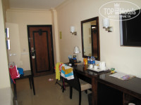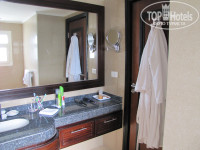 2. НОМЕР. Номер 1096 действительно был хороший, во-первых он на 2-ом этаже в бунгало, плюс этого расположения в том что по утрам, да и в течении всего нашего отдыха наш покой не нарушали ни крики, ни шум, ни детская беготня по коридору. Вид из номера был на 3 стороны , на море и пляж, гл.корпус и на теннисные корты. И во-вторых наше бунгало было 3-им от моря. Если учесть , что бунгала располагаются на склоне и после пляжа надо подниматься в гору , что бы попасть в номер, то это конечно здорово. Номер не шикарный, но есть все необходимое мини-бар (пополняли ежедневно 2 банки пива Stella, 2 банки пива Хайникен, 4 банки колы, фанты или спрайта, 3 бутылки воды без газа, и 2 бутылки газированой воды, 2 маленьких пакетика сока и 2 шоколадки ) т.к. у нас было ALL, то все это было бесплатно кроме пива Stella - 31 фунт, Хайникен -36 фунтов, Шоколадки - 15 фунтов , чайник, 2 чашки, и чайно-кофейный набор, сейф, ЖК телевизор (3 российских канала),кондиционер, 2 кровати (большие 1.5 спальные) , кровать для ребенка и гардеробная.. Мебель в номерах новая и "не убитая". В ванной комнате из гигиенических средств шампунь, гель д\душа, кондиционер д\волос, шапочка д\душа ,мыло, жидкое мыло и т.бумага, халаты, тапочки, есть фен и весы. Ванна, раковина и унитаз-биде, оч. хорошего качества (смесители, если кому-то говорит название фирмы Grohe). Над ванной есть приспособление для сушки вещей. Убирали в номере хорошо, мы каждый день клали по 2 доллара, (правда кол-во денег на качество уборки не влияло). В номере все работало, и проблем никаких не было. И еще ОЧ.ВАЖНАЯ ИНФОРМАЦИЯ в номере отеля и на улице, по вечерам у бассейна, были комары ( может из-за того что мы были в октябре?) по-этому берите с собой ФУМИТОКС и спрей от комаров. Даже если учесть что ежевечерне сотрудники отеля ходят по территории с "дымовой трубой" и опрыскивают растения от всяких насекомых комары и муравьи (в гл.здании) в номерах, все равно есть.