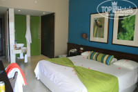 Номер: достаточно просторный, чистый, ванная и туалет разделены, на балконе джакузи, на полу плитка. Мы жили на 3 этаже. Мокрая одежда и вправду в номере полностью не просыхает, а вот на балконе - отлично сохнет. Ни разу не видела никакой живности ни в номере, ни где-либо еще. Ой, нет! Вру! Видела двух ящерок на территории! Но они совсем не страшные и боятся людей намного больше, чем мы их).
