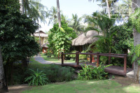 На территории есть также 5 двухкомнатных вилл, расположенных прямо на море, а также 4-хэтажный, и, кажется 2-хэтажный корпуса. Отель очень зеленый и красивый. Много небольших прудиков с лилиями и небольшой ручей. Везде плавают рыбки. В ручье даже живет какой-то сомик длиной с полметра.