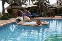 Пляж песчаный. Песок светло-желтый, мелкий и очень противный. Так как все время дул довольно сильный ветер, то над пляжем постоянно стояла пыль. А также этот песок довольно таки чувствительно сек по ногам. Так что на пляже мы были только первый день, потом перебрались к бассейну. Кстати, бассейнов в отеле два. Мелкие. В одном есть джакузи.