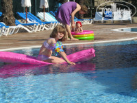 Была в мае с 10-24,было нежарко,вода в море бодрящая,плавать можно только с пирса,потому что вход в море с таааакими валунами,войти в море могла только дежась руками за эти валуны,самое большое разочарование для меня-то,что дети приехали на море,а моря практически не видели,т.к. в море детям невозможно войти,они просились в бассейн.Все остальное было замечательно,рай для сладкоежек-огромный стол с тортами и пирожными,баклажаны во всех видах,свежее, вкусное,рыба действительно одна скумбрия,мяса маловато в ассортименте,но нам хватило.Дети довольны,еще хотят,но я повезу их теперь куда-нибудь на песочек,Отзывы перед поездкой читала,думала море с галькой,но такого просто не ожидала.На аниматорах все держится,как я поняла,(ребята!требуйте прибавки!),очень понравилось рыбу кормить с пирса,запасались булками на завтраке-дети в восторге!По номерам похоже шарят,вечером уходила на представление,возвратившись,обнаруживала,что номер открыт,но ничего не пропало,ценности хранила в сейфе.
