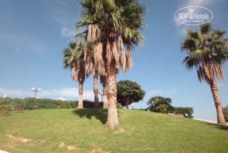 Но зато нам очень повезло с номером – номер Family, двухкомнатный с видом на море не в здании, а что-то типа отдельных бунгало с общей на несколько «бунгало» территорией (с улицы сразу в номер). За вид на море не платили – просто повезло. Вид из номера шикарный! Номер убирали отлично – никаких претензий, белье меняли часто. В номере: на полу плитка, 2 одноместные кровати в одной комнате, 1 двухместная в другой, шкаф с огромным количеством полок и ящиков, тумбочки, телевизор с 2-мя русскими каналами, сейф за отдельную плату брали. Кондиционером никогда не пользуемся – не проверяли. В санузле - ванная, фен. Утюг дорожный мы всегда берем с собой, с учетом печального опыта в Болгарии, - очень удобно. Дверь на ночь оставляли открытой, чтобы был свежий воздух, занавешивали шторами, однако из-за отсутствия москитной сетки периодически были комары, поэтому лучше взять с собой средства от комаров.