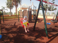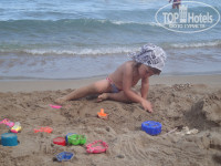 Море от отеля находится на расстоянии 15 минут неторопливым шагом. Дорога к морю благоустроенная, по сторонам зелень, пальмы и мини-зоопарк – на радость детишкам – ослики, козлики, черепаха. Очень довольны, когда ребятишки их подкармливают травой и булочками из ресторана. Моей дочурке это доставляло особую радость. Пляж через дорогу, но с этим тоже особых проблем не было, поток транспорта не постоянный. После перехода через дорогу нужно идти все время прямо через другие отели. Название пляжа STAR BEACH. Лежаки и зонты платные – по-моему, 2 евро за лежак и 3 евро за зонт. Первый день, мы по-честному нашли на вышке парня, которому надо заплатить деньги за удобства, потом позднее обнаружили, что по пляжу ходят собирают дань парни в специальных майках с кассовой машинкой, а на следующий день нашли укромное местечко на пляже, куда эти парни заходят крайне редко (от центра пляжа, где бар и мост, сразу направо – буквально метров 20), и получилось, что мы заплатили только в первый день и в последний:). Свободные лежаки были всегда. На территории пляжа есть небольшой аквапарк с горками. Кто-то нам говорил, что он платный – мы купались там бесплатно пару дней, и никто с нас денег не брал. Есть неплохая площадка детская (на фото). МОРЕ ЧИСТЕЙШЕЕ!!!– собственную тень видно, но один раз нам попался морской еж около берега – так что лучше быть осторожней… Про весь пляж сказать не могу – все время купались в одном месте. Пляж в принципе чистенький, песочек, очень пологий вход в море. Камни есть, но далеко от берега. Пару дней были сильные волны, однако это не помешало туристам, а моя племянница была в огромном восторге – еле вытащила из воды.