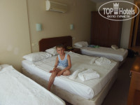 Отдыхали с 6-летним ребенком в июле 2012 г. Туроперератор у нас был Coral Trevel - все замечательно, рейсы без задержек - в отель мы приехали около 10 утра, в номер нас не заселили - сказали подождать до 12 часов. К нам сразу же подошла девушка с предложением посетить хамам, после долгих уговоров я согласилась, т.к. после 8 часового перелета уж очень хотелось ополоснуться и переодеться (только не помню сколько я заплатила за эту услугу, кажется 30 долларов, еще предлагали курс массажа за 100 долларов. Для меня одного раза было достаточно). Долго нас там парили, мы и обед пропустили. Нас заселили, мы переоделись, пошли на море. На море мы пришли часов в 16, к этому времени на пляже практически никого не было. Ребенок совсем проголодался, хорошо супермаркет есть через дорогу. Экскурсии покупали у туроператора в DALYAN (Эгейское море), на яхту BARBOSSA, и возили нас по торговым центрам (бесплатно). Немного об отеле: Жили мы в 102 номере - это над центральным входом, мне мешал шум от автобусов, кот. везут туристов с раннего утра - до поздней ночи, кстати этот номер четырехместный, а жили мы там вдвоем. Убирались за 14 дней раза 2, полотенца не меняли. Еда нас вполне устраивала (очереди в обед первое время шокировали), брали горячее, фрукты - апельсины, яблоки, сливы, абрикосы, арбузы, салаты не ели (мне они показались не первой свежести). На несколько дней отдых был испорчен так называемой "инфекцией". Сначала плохо стало ребенку, рвота, понос, высокая температура, на след. день и мне поплохело, хорошо с собой была аптечка, мы с ним быстро восстановились. Не знаю что это было, но вода в отеле конечно не лучшего качества, и еще этот сок ядовито- зеленого цвета, я не могла спокойно смотреть как дети эту гадость стаканами пили. В общем отдохнули хорошо, загорели, накупались, фруктов наелись - черешня, персики, инжир -мммммм..., у нас таких фруктов даже летом не купишь, отель средний, 3*.