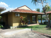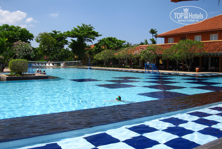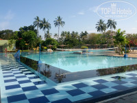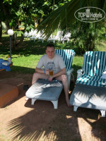 Гид встретил нас в аэропорту с табличкой @Joinup@ после не продолжительного ожидания нас и еще одну пару погрузили в микроавтобус тоета и отправили в отель. Ехали не долго, минут 30. По прибытию в отель нам дали заполнить 2 бумажки, надели браслетики Означающие все включено и дали ключи от номера. И мы пошли искать номер сами, не дожидаясь пока носильщик погрузит всех на тележку и не начнет развозить. Наш номер 162 находится в конце островка, с видом на лагуну - это мы увидели только утром. Нашли номер по табличкам - все понятно. Зашли в номер и прозрели - номер БОМБА!!! и без всяких доплат. Сразу осмотрелись и спать!! Утром были очень удивлены красотой отеля и местными пейзажами. Проходя мимо бассейна немного охре нели от его красоты и размеров.
