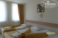 Прилетели 18 сентября 2012 в 6 утра, в отеле были в 7 часов утра, сразу переоделись в туалете в корпусе (слева) от входа в сам отель, тут же нас отправили на завтрак, затем за символическую плату нас заселили в номер на пятом этаже в третьем корпусе с видом на горы и море ( в 10 часов), кстати сами выбирали номер, предложений было где-то три разных комнаты. Вообщем заселение прошло хорошо.