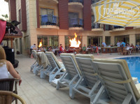 Отдыхали в этом отеле во второй раз. Общее впечатление хорошее. Расположен в самом центре города Кемер. До пляжа 5 минут ходу пешком. так же как и до центральной площади и автостанции. с которой можно доехать например до Антальи или до аэропорта.Рядом городские супермаркеты с приемлемыми ценами "Tansas" и др. вообщем все рядом. Через две улицы ночные городские клубы .Пляж чистый галечный, жезлонги и матрасы бесплатные и вдостатке.