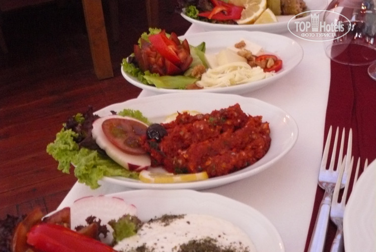 ПИТАНИЕ - самая слабая, на наш взгляд, сторона отеля. нет. голодными вы не останьтесь, не отравитесь. но мяса по честному мало! завтраки скудны , на обед из мяса что-то невзрачно тушеное с овощами и куриные рулеты. на ужин, правда, повара стараются - на гриле каждый день разное - курица, рыба, говядина, шаурма из баранины (ну как из баранины...вспененое синтетическое "мясо", воняющее бараниной). из фруктов были яблоки, апельсины, бананы, айва, мушмула, груши (очень вкусные), один раз клубника. сладости - как везде в турции. что-то манное с сахаром, размазанное по бисквиту. но пахлава хорошая. из б/у продуктов, вчера не съеденных свежими, а сегодня их тушат, пережаривают, засыпают специями - что уж греха таить, готовят! . и довольно много. поэтому, всячески налегали на свежие овощи и зеленые салаты. для деток, я думаю, чего-то вполне можно найти - по утрам бывала рисовая каша. на обед - пюре, разноцветные макароны.