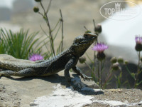 с балкона был шикарный вид на заливчик, бассейн и соседнюю Аску Бусе. по вечерам наблюдались чудеснейшие закаты (напоминаю, все это без единого евроцента в карман ресепшеониста). есть одно предостережение - балконная раздвижная дверь легко и просто защелкивается автоматически. мы вот таким образом как-то вечером застряли на балконе, сами себя случайно заперев (благо достучались до соседей, они позвонили на ресепшн и нас вызволили). так что будьте осторожны, ежели ваш дитёнок один побежит в номер к примеру переодеться, чтобы с ним не произошло подобной беды.