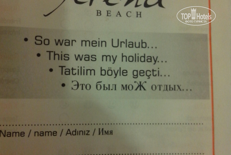 А вот, если качество номера Вам не понравится, например, что-то не работает, или просто хотите жить ближе к столовой и к морю, после собрания изложите свою проблему отельному гиду и с ним вместе подойдите на ресепшен, так вообще сразу все порешаете.