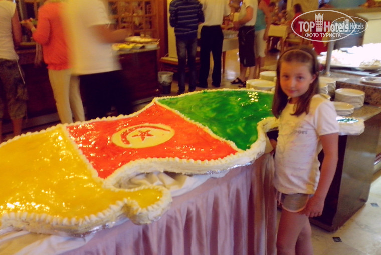 Мы с семьей ездили в Тунис в начале мая, и получили массу положительных эмоций от этого путешествия. Прилетели 30 апреля ночью, переживали, что заселение будет утром, но всех заселили ночью, и очень быстро. Нам попался не очень удачный номер с видом на аэропорт и двор кухни, всю ночь, взлетали самолеты, шумели кондиционеры и вентиляторы кухни, и что самое обидное, не было балкона. Думали поменять номер, но дети успели разложить вещи, да и решили, что нам уставшим после дня путешествий и экскурсий, и так сойдет. Убирались в номере каждый день, и постель меняли, и полотенца, и водичка всегда была в бутылках. Когда была уборка мы не замечали, но придя в номер, всегда был порядок и чистота. С питанием в отеле все отлично, сыты были всегда, мясо, фрукты, выпечка, наши любимые оливки - все это было в изобилии, но на море хотелось, морепродуктов: креветок, мидий, рыбки - этого не было, хотя рыбные рынки Туниса изобилуют разнообразной рыбой. Территория отеля не большая, служащие стараются ухаживать за ней. Но как нам показалось колличество отдыхающих в отеле не совсем соответствует размерам отеля и ресторана. Уже на 3 день в ресторане сложно было найти свободный столик, и за едой стояли очереди - это конечно портит общее впечатление от отеля. В море и бассейнах мы купались каждый день, днем было тепло, а вечером еще прохладно, да и ветерок дул. В первые дни мая мы взяли экскурсию в Сахару, получили массу впечатлений, красивых фотографий, отличное настроение и новые знания о стране, ведь проехали половину страны. Больше экскурсий мы не брали, а ездили самостоятельно, так как жители Туниса очень миролюбивые и доброжелательные. Очень интересный зоопарк Фригия, животные там живут в условиях приближенных к природе, На электричке ездили в Монастир и Сусс. Посетили Мавзолей Хабиба Бургибы, крепость Рибат, забрались там на башню, ходили в порт, посетили ресторан Ля Грот, покушали рыбы, креветок... Посетили рыбный рынок Монастира - он очень впечатлил нас. Посетили вещевой рынок, торговались, покупая сувениры, и покупали их дешевле, чем в Ясмине. Просто гуляли по городу и наслаждались непривычной архитектурой. Замечательная страна Тунис - мы полюбили ее всем сердцем. Конечно портил впечатление мусор - который валялся везде: и в море, и в пустыне, и просто под ногами. Господа тунисяне, полюбите свою страну и очистите ее от мусора!