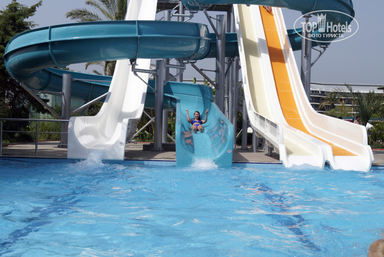 Прилетели рано утром .. часов так в 6 утра... Туроператор Анекс Тур, авиакомпания Ютэйр. До отеля доехали за 1,5 часа где то... с 1 остановкой у магазинов и туалетов. Нам повезло наш отель был вторым по списку, поэтому дорога заняла всего 1,5 часа, так мы думали 2-2,5 ехать... Ехать в автобусе было интересно. Гид Анекса Марина рассказывал разные вещи о Турции. Приехав в отель нам одели браслеты и отправили на завтрак... после завтрака мы заполнили анкету, подождали 20 минут ( в это время посмотрели территорию отеля), и нас заселили в хороший номер с видом на горы и море.... в корпус А со стороны базара.... некоторые были не довольны видом из номера, что внизу за отелем овцы или барашки гуляют и тд... НО, если поселиться с другой стороны корпуса, то я думаю людям не позавидуешь... там же постоянно народ обедает, ужинает на открытой террасе, от бассейна звучит музыка, вечером шоу тайм да и молодежь ведь не сидит в номерах )) Номер хороший, средних размеров... есть все необходимое кровати (2 шт), тумбочка, ночники, торшер, столки и стул, комод с зеркалом, минибар был полностью бесплатным (СОК - вкусный, вода обычная и газированная), туалет, ванная с душем, фен... балкон с 2 стульчиками и маленьким стулом похожим на табуретку.