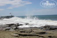 Кстати о пляже... его как такового, с нормальным входом в море нет. То есть естественные плиты, с ямами и камнями и постоянными сильными волнами не дают зайти, люди ныряли с пантона, но с ребенком туда соваться конечно не вариант. Ходили на дикий платный пляж, слева от отеля, там песок и поспокойнее, просят за лежак и зонтик 3 бакса, но торгуются.