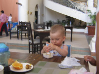 чтобы не было остро! Соки не давали, только свежевыжатый, он пил много чая, ел фрукты , йогурт, ему хватало! и нам конечно тоже!! Брали пригласительные в рестораны - больше всего понравился японский! целое шоу! Мясо в ливанском оооочень вкусное, итальянский тоже нормальный!