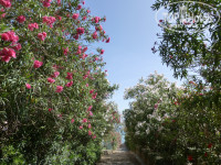 Прямого выхода на пляж из этого отеля нет, но это нас не огорчало, так как до моря мы шли по зелёной цветущей аллее, и 5 минут наслаждались растениями и их ароматами. Шезлонг и зонтик стоили 2 евро, каждый. Пляж песчаный, чистый.
