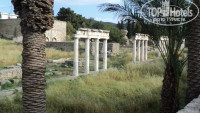 Отдыхали в мае 2013, повторятся не стану отзывов про отель предостаточно, попробую описать объективно, в отеле понравилось-уборка, завтраки сносные на 3-,не далеко от моря, из минусов во первых скажу об известном всем владельце отеля Никосе, с виду очень приятный, дружелюбный, в первый день на своей машине отвез нас в Кардамену, показал где брать в оренду транспорт, где супермаркет.Если кратко-он очень не любит когда вы берете машину напрокат мимо него или не тратите деньги у него в баре, отношение сразу к вам поменяется, еще мне не понравилось во время завтрака начинает кричать на бедную девушку из прислуги в столовке, несколько дней наблюдали эту картину, по поводу моря и мешков, мешки это конечно хорошо, но это по колени, советую сразу не парьтесь -пройдите левее метров 100, хороший песчаный пляж и заход в море.Отель находится в поле, вокруг только ящерицы, если вы не на колесах-советую ходить в 5-ки, там каждый вечер выступают аниматоры, типа шоу, ну и бесплатно можно угостится напитками.Из развлечений в отеле- только вы сами и ваша изобретательность.По поводу экскурсий, взяли на прокат скутер 40 евро на 3 дня+10 евро за каждый последующий день.По дороге в г.Кос посетили венецианский замок,руины замка находятся на самой вершине горы, по дороге в замаок где-то на пол пути увидели заброшенную церковь с фресками на стенах (см.фото) очень впечетляет,г.Кос- городок симпатичный набережная, порт, развалины, колонны и амфитеатр, ходит паром до Бодрума 8 евро в обе стороны, не далеко от Коса есть Термы, советую посетить, мы ездили 2 раза через день.вообще остров очень маленький не успеешь на скутере разогнаться -как остров закончился.Будете ехать в термы возьмите с собой морковки -там при входе стоит рекет в виде маленького ослика. несколько раз заезжали в Зию, там много сувениров, продавцы в основном наши соотечественники, распросите их как лучше добраться до церкви к-рая находится на самой вершине горы и по каким дням проводят греческий вечер, стоимость-25 евро, включая еду и греческие танцы, у гидов это стоит-50.ездили также в Плаку, обычный лес-заповедник, там живут в дикой природе множество павлинов и при них прикормилось еще больше котов, вом будут советовать брать с собой вискас-не берите, не кормите этих котов дармоедов.при спуске к поляне с павлинами попали в дождь и решили укрыться в гроте, при более детальном осмотре ми нашли пещеры троглодитов (см. фото), однокомнатные и двух, их там много вся гора изрыта, странно что туда не водят туристов.Из экскурсий советую съездить на остров Нисирос, там находится вулкан и церковь в пещере на горе, туда стекаются поломники к иконе к-рая якобы исцеляет от бесплодия.на остров добратся очень легко, идете в порт Кардамены к 9.30 утра, там отправляются катера на остров Нисирос, мы договорились по 10 евро с чел.в обе стороны, на острове прямо в порту есть прокат авто и скутеров, мы брали скутер за 10 евро и объездили пол острова, посетили две деревушки, очень живописные и вулкан,про вулкан ничего писать не буду увидете сами, также церьковь на горе, надо признать что остров Кос красивый, но с Нисиросом не сравнить, сувениры на Нисиросе дешевле чем на Косе. Вобщем отдых удался, остров очень красивый, море хоть и прохладное но чистое.да чуть не забыл для байкеров- нашел в г.Кос магазинчик, торгуют китайцы, шлем обтянутый кожзамом, 