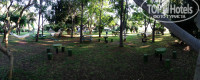 * Есть полянка с гамаками, полянка со столами, полянка с тренажерами.