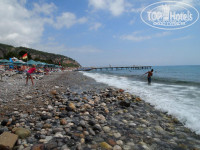Пляж. 100 метров и вы на пляжу, вода чистая, но нужны тапочки, при входе в море камни...Сам пляж галечный, много лежаков и зонтиков.