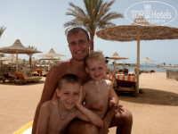 Ездили 2 взрослых и двое детей(3 года и 6 лет) с 23.05.2013 по 05.06.2013.Начну с самого начала,прилетели мы утром в 7:50,довезли до отеля на автобусе с кондеем,на ресепшне одели сразу браслеты и сказали час погулять,а потом заселят. Ну мы пошли,позавтракали и вернулись и как обещали дали ключ от номера(денег не давали),пошли смотреть номер,он был в корпусе первом или 1000 на 3 этаже,сначала хотели сменить высоко,балкон выходит на дорогу на территорию отеля и видно соседний отель Golden 5.Подумали и решили остаться,так как променаж надо делать,а то колобками станем. В номере всё работало исправно. Убирались в номере хорошо, мы всегда уходя на моря с утра оставляли 1 доллар. Море обалденное, была вода 28 градусов,короче парное молоко. Шезлонг свободный всегда можно найти, даже если прийти на море в 10 утра. Анимация была отличная,каждый день в 8 вечера ходили на детскую дискотеку,аниматор Света умница,танцевала с детьми хорошо. Потом мы всегда смотрели шоу,ребята умеют повеселить и развлечь.Огромное им спасибо,Рами за аквааэробику,за его Факир шоу,Кире за волейбол и аквааэробику,Ане и Толику за отличное настроение,за приятное общение. Ещё ходили в рестораны Ливанский,Итальянский,Рыбный.Ливанский понравился,очень вкусная курочка,говядина и люля-кебаб и это все на мини мангале ставят на стол,обслуживание хорошее,все вежливые и внимательные.в Итальянском вкусное белое вино и пицца,суп,паста не понравилась,мясо жестковато,обслуживание тоже на высоте.Рыбный ресторан не понравился,хотя муж с удовольствием уплетал крабов,кальмаровые кольца во фритюре,в итоге потом было плохо, но мы не знаем связано ли это с едой в рыбном ресторане. Но так как мы были более 11 дней нам эти рестораны можно было посетить 2 раза,в рыбный мы повторно не пошли. В Главном ресторане тоже кормили вкусно, но как-то всё быстро приелось, в конце однообразное питание стало. Ездили на 2 экскурсии Сафари на джипах и на лодке с прозрачным дном, брали у своего Гида. Лодка с прозрачным дном не понравилась,можно намного больше красивых рыб увидеть за лагуной,за мостами,где открытое море,единственное порадовало видели 5 дельфинов. Сафари не плохо, до в конце уже подустали (долго),катались на квадрациклах,баги,верблюдах,видели мираж,в телескопе Сатурн,были в мини зоопарке,видели дикую кошку,страусов и т.д.,были в деревне бедуинов,смотрели шоу,но такое мы уже видели в амфитеатре(территория отеля).