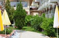 Территория отеля хоть и маленькая, но ухоженная, вся в зелени и цветах.