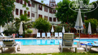 Отдыхал с женой в этом отеле в конце мая-начале июня 2013 г, тур-оператор TezTour. Небольшой симпатичный отель в европейском стиле в самом центре Кемера, П-образной формы с внутренним двориком, где Вы найдете - бассейн для взрослых с очень чистой водой, шезлонги, душ, кабинку и бассейн для малышей, столики для приема пищи под деревянным навесом рядом с небольшим фонтаном и садом с розами и другими цветами вокруг столиков, барную стойку с напитками, небольшой уголок для детей. Отель имеет два входа. Своего пляжа у отеля нет, до пляжа можно прогуляться за 10 мин или заказать трансфер ($3 на человека за отличный песчанный пляж в живописной бухте, на пляже бар, с лежаки и шезлонги). Номера самые обычные, небольшие, мебель не новая, но все в рабочем состоянии, есть крошечный телевизор, холодильник, фен и мощный кондиционер, на полу ковролан или кафель, постель чистая, уборка регулярная. В ванной комнате душ, поддон с низкими бортами, поэтому вода попадает на пол ванной комнаты (есть отдельный слив). В большинстве номеров нет балконов (только у пары больших номеров есть балконы, выходящие во дворик), окна дереянные, со ставнями. Кратко о плюсах и минусах: