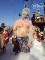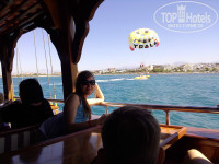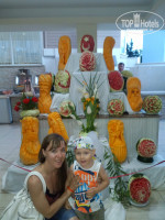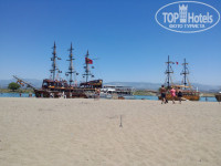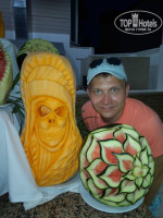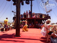 Питание. Питанием очень довольны. Большое разнообразие: зелень, салаты, вторые блюда, пицца, лепешки, сладости. До последнего дня не возникало ощущения, что эта кухня надоела. Всегда можно найти что то новое. Всегда есть курица и рыба. Иногда мясо. Особо отмечу телятину с баклажанами, шашлык из курятины, шаурму. Из сладостей особо понравилась пахлава. Очень полюбились апельсины. В наших краях таких не бывает. Также арбузы, персики, абрикосы, сливы, грейпфрут, помело, яблоки. Два раза кормили супами борщ и щи, который разливал сам шеф-повар, желал приятного аппетита, а по его лицу было видно, что он получает удовольствие, видя что русские очень довольны этим супом. Супы были очень вкусными. А шеф-повар, я считаю, - это вообще мега звезда отеля. Нам посчастливилось с ним познакомиться и пару раз вечерком в баре он подсаживался к нашей компании и рассказывал про себя и свою жизнь, а также внимательно выслушивал наше мнение о кухне, впрочем критики он от нас не слышал. Очень приятный мужчина и напоминает актера Рассела Кроу, хотя он по происхождению турок. У него порядка 20 костюмов шеф-повара и всегда впечатляюще выглядит. А также мастерски вырезает из арбуза и кабачков интересные фигуры и узоры. Из питья натуральных соков здесь нет (только платные 1 $ свежевыжатые). Сладкие напитки типа "юпи". От них только пить хочется, химия. На обед и ужин как правило пили по бокалу белого вина, а от жажды пили пиво. Пиво легкое, на вкус приятное, хорошо утоляет жажду. Сильно от него не пьянеешь, но можно расслабиться. Из алкоголя также имеется красное, розовое вино, джин тоник, водка. Алкоголь вполне потребляемый. Также имеются кофе машины и кулеры питьевой воды.