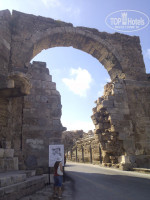 Сиде и туризм. Отель от Сиде находится примерно в 4-х км. Мы дважды были в Сиде. Один раз днем, другой раз вечером с подсветкой. Сиде настоящая находка для тех кто любит историю и древние развалины. Отдельная тема Амфитеатр. Вход туда платный и нужны турецкие лиры (1 билет 10 лир). Кстати доллары на лиры нам любезно обменял по курсу гид тезтура Иван. В Сиде мы добирались самостоятельно на такси 10 $ в одну сторону. Как вариант можно на автобусе. Билет вроде бы 1,2 $. Вообще в Турции бензин дорогой - 65-70 р. за литр. Стоит отметить пляж и море в самом Сиде - стоит там хоть разок искупаться. С вечернего Сиде мы возвращались в отель пешком по набережной. Все облагорожено. Идти примерно час. Памятная прогулка. Плавали на пиратском корабле в Манавгат посмотреть на водопад и посетить самый крупный рынок в данном регионе, а также ездили в аквариум в Анталию (5-й по величине в мире, 130 метров стеклянный тоннель с акулами и скатами). А вообще туризм имеется на любой вкус вплоть до рафтинга, сафари, поездки на самолете в Израиль. Так что, чем больше с собой денег, тем качественнее отдых.