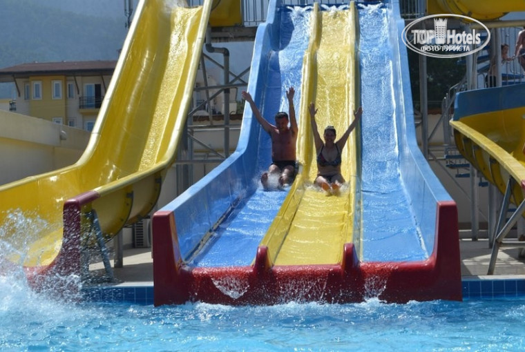 Отель расположен в поселке Бельдиби, в непосредственной близости от живописных гор. Территория поделена на две части: в одной находятся административный корпус, жилые корпуса, хамам (турецкая баня) и бассейн. На другой половине ( туда можно попасть пройдя по подземному переходу) ресторан, бассейн, бары, зоны отдыха и, конечно же, пляж! Территория чистая, ухоженная. На пляже зонты и шезлонги бесплатно, за полотенце (пляжное) оставляешь залог 10$, которые возвращают при его сдаче. На пляж с напитками не пропускают, я имею ввиду напитки из бара. Про гальку писать не буду, есть свой понтонный мост с лестницей для спуска в воду.