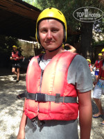 Теперь про рафтинг! Оооо, это нечто восхитительное! Горная река с хрустальной водой! Пороги ощутимые, но не страшные. Мы взяли двухместную лодку, адреналина хлебнули! Кучу положительных эмоций тоже! Но это от реки, а вот остальное... Поездку также купили у tez tour, стоит 60$ на человека, за эти деньги нам обещали: сам рафтинг, парк развлечений с 5-ю бесплатными и 3-мя платными ( по желанию) аттракционами, плюс обед с шашлыками. На деле оказалось следующее: проплыли три км, остановились в этом парке, из развлечений был только один бесплатный - со страховочным тросом преодолевали участки на высоте нескольких метров, т.е. где-то по канату пройти, где-то по качающимся доскам, где-то на тарзанке скатиться), на платные нам не дали даже взглянуть! Потом проплыли еще 9 км, конечная. Обещанные шашлыки оказались единственной жаренной (не на костре!) ножкой цыпленка! Если кто-то расчитывает на ножку, включающую бедро и голень, то ошибается - только голень! Плюс салат из моркови и картофель или макароны - на выбор. Мы, конечно, туда не кушать приехали, но за обман обидно! В пути нас сопровождал фотограф и на конечной можно было приобрести диск и фото по цене 45 и 5$ соответственно. Диск мы взяли на две семьи, еще одну фотку - уж больно удачная))). К чему я это пишу? На улице есть туристические агентства, которые предлагают эту поездку за 25$, программа та же, поверьте, один в один, с питанием, парком, страховкой. А вот наши друзья, отдыхавшие одновременно с нами в соседнем поселке, купили эту поездку в уличном агентстве за 15$ и программа ничем не отличалась! Они поехали от Пегаса и их туроператор предлагал рафтинг за 40$! Та же река, тот же маршрут! И диск они купили за 25$, просто торговались!