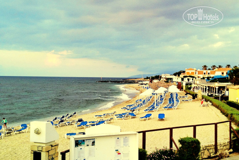 Что касается пляжа, то к нему претензий нет – всегда есть свободные лежаки с зонтами и столиками, под ногами мельчайшие камешки. Однако подкачал вход в море! По всей его длине валяется множество больших и не очень валунов, которыми можно повредить ноги, если не аккуратно входит в море. Есть два более или менее нормальных входа в море: первый расположен с левого края возле пирса, но там скапливается большое количество детей и их родителей. Второй – справа, напротив школы сёрфинга. Вот там нам очень понравилось купаться, т.к. народу мало, булыжников практически нет и есть возможность постоять по пояс в воде на естественных природных плитах, расположенных друг за другом в 10-20 метрах от берега. В бассейне под конец отдыха купаться стало неприятно, поскольку вода нагревалась до состояния тёплого молока и никак не освежала.