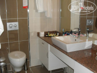 От аэропорта Анталии доехали примерно за 1ч40мин, автобусы все комфортабельные, гиды приветливые! Ресепшн работает не очень, русский язык знать не хотят! Заселение в основной корпус только в 14:00, мы с 9:00 ждали, можно заселиться в домики находящиеся на территории, но не то.... После долгого ожидания нас заселили, впечатления от номера только хорошие, очень чисто, фен, душевая кабина, кондиционер, во всех номерах балконы, уборка каждый день, все меняют, телевизор, мини - бар, воду приносят каждый день, при заселении по одной бутылке - фанта, кола, мин.вода - бесплатно, в последующие дни если нужно за деньги, но нет необходимости, т.к. на территории и на пляже все это бесплатно на разлив. Сейф в номере - 2$ в сутки, оплата при выезде, только сказать нужно сразу, что он вам нужен. Wi-fi на всей территории отеля бесплатно, интернет кафе за деньги, бильярд и др. тоже за деньги.