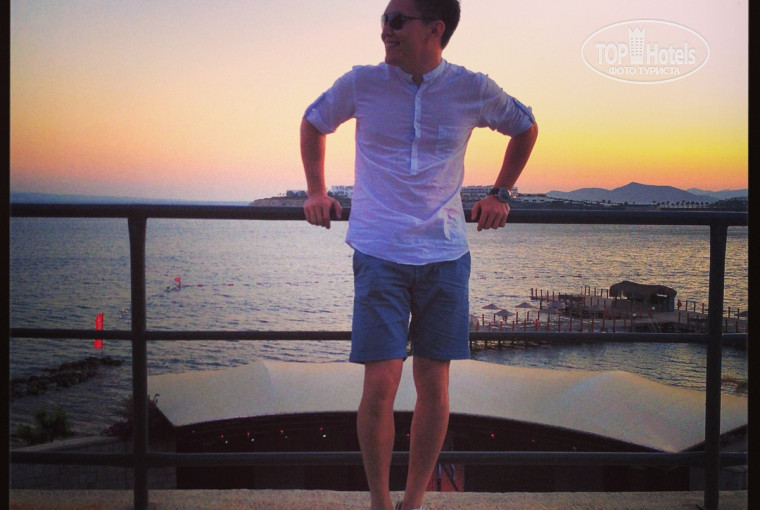 Отдыхал с семьей с 24.07.13-04.08.2013, отель в целом оставил очень хорошее вречатление. Мы прибыли из алматы в 7утра, в отеле были в 8, комнату пока освободили к 12 дня, мы покушали и поплавали. Мы остановились в номере 7200, семейный с двумя спальнями и большущим балконом со своими шезлонгами и диваном качалкой, вид с балкона потрясающий, я в турции не в первой и такой вид на море меня очень впечатлил. Что касается сервиса, мне вроде все пониавилось, иногда старался оставлять 5лир на кровати, чтобы меняли полотенца и протстыни каждый день, а не через день. Еды большое разнообразие и что мне нравится в бодруме, это то что тут мало наших, особенно тех которые любят дешевые понты и нажираясь в хлам, раздражают окружающих. Тут в основном отдыхают состоятельные турки из стамбула и европейцы, отдых в этом отеле очень спокойный, как раз то что было нужно нашей семье. Но кто хочет диско и развлечений, с 23.00-1.00 ночи работает ночной бар на берегу моря, каждый день разнообразие программ, живая музыка И так далее. Анимация не плохая, но для детей все время одно и тоже каждый день, на 5 день сыну немного поднадоело. Свободные лежаки в основном всегда можно найти,вода в море прозрачная и очень читсая, что видно дно, берег песчанный, но песок в перемешку с мелкими камнями, которые не особо приятны и вода всегда прохладная, так что долго там не задерживались, а плавали в основном в бассейне. Алкоголь не суперский конечно, но немножко выпить можно, хоть я и не любитель выпить, но на отдыхе слегка выпить думаю такой сойдет. Из главных минусов отеля, это то что он очень далек от центра бодрума и находится в райное тургутрейс, это примерно 30км от города и 60км от аэропорта, в отеле полно такси которые берут 140лир в одну сторону, но мне удалось снизить до 180лир туда и обратно, так что если вы любитель городских тусовок или шоппинга, то вам будет далековато выдвигаться с отеля и накладно. Еще один минус в малом количестве лифтов, так как приходилось по долгу ждать, и лифты для персонала и лифта одни и те же, так что не удивляйтесь если при остановке на этаже вы будете видеть персонал с огромной тележкой с бельем, куда уже вы не поместитесь, так что думаю с этим вопросом, проектировщики отел немного не продумали. Так как я занимаюсь в спортзале, то наличие оборудования не особо потянуло на 5 звезд. Но если сказать в целом, то отдых мне очень понравился в этом отеле, но думаю в следующий раз попробовать что нибудь другое, но тоже в бодруме, так как климат тут мне больше всего нравится чем в анталии. Кто едет с семьей, то советую этот отель.