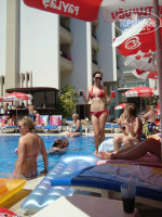 Большой недостаток- нехватка шезлонгов- они все были с самого утра заняты и приходилось весь день киснуть в воде)) Пляж маленький, в воде водоросли. Но они не мешают плавать. Рядом есть куча других пляжей, в том числе и бесплатных. Купаться на море и в бассейнах после 18:00 нельзя((