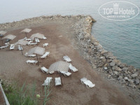 Отдыхали с 15-25 июня 2013г. Скромный, очень скромный отель для тех кто не привередлив ни в проживании, ни в питании!!! Тех не больших денег, что стоит этот отель- оправдано!!! Территория не ухоженная, детская площадка разрушена! Судя по фото в интернете территория отеля была симпатичнее, ухоженная! Жаль, что забросили! Много семей с детьми, пенсионеров. Питание без изысков, но всё съедобно! Первые 2-а дня на завтрак было масло сливочное, паста шоколадная, колбаса, а затем всё это исчезло и не появлялось! Но голодными мы не были. Предупреждение!!!! Пива в отеле в баре нет, не было и не будет! Будьте готовы его покупать в магазине. Алко меню: Вино кр., водка(не раке). Напитки из порошков(юпи) без ограничений! Кола, спрайт, фанта вроде бы в достатке только стаканов вечно нехват!!! Еда в столовой самая простая: овощи свежие, Овощное рагу,рыбка,соевые котлетки, иногда курица(что то одно).Всё свежее, приготовлено вполне съедобно, макароны ,рис, картошка. Фруктов мало(арбуз,апельсины, лимон, один раз давали дыню)ягоды покупали сами. Вход в воду каменистый, без спец.тапок сложновато, но многие обходятся! Тапки в магазине при отеле стоят от 5-ти до 13$. Уборка номера по запросу. Номера средние. Вся обстановка смахивает на тур.базу из советских времён, только море средиземное и классное!!! В общем то нас это не очень напрягало мы знали куда ехали! Ехали отдыхать, а всё остальное не важно!!! Персонал доброжелательный, отзывчивый. Территорию отеля жаль,повторюсь,но отдыху это не мешает ни сколько!!! Много комаров!!!! Берите ФУМИГАТОРЫ!!!! Если вы не привередливы, то вам сюда!