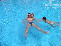 Спустя месяц по приезду из Турции, наконец-то собрался написать отзыв. Первые восторженные впечатления уже улеглись, и могу спокойным взглядом посмотреть на то как мы отдохнули. Ездили семьей из 5 человек, 3 детей (4,9,13 лет) с 25.05.13 по 4.06.13г. Выбирали отель в турагенстве, посоветовала менеджер, за что я ей в принципе благодарен, это был первый опыт поездки за границу и он не разочаровал несмотря на некоторые нюансы. Прилетели мы в отель достаточно поздно, около 24.00 по местному, оператор был Корал, претензий к ним никаких, автобусы отличные, доехали быстро, гид в дороге не доставала, дала всю нужную информацию в необходимом количестве. По приезду разместили нас практически моментально, без всяких доплат дали виллу 40D, на втором этаже, от основного здания пешком 50 метров. Носильщику дал бакс, т.к. самый мелкий детеныш уже спал у меня на руках и носильщику пришлось переть 2 большие сумки. Он на радостях все объяснил показал что где и как, хотя мы первый раз, может так и надо?). Время было позднее, хотелось спать, но любопытство пересилило здравый смысл и мы пошли осматривать территорию). Сходили на ночной суп правда толком ничего не поели, т.к. все было с непривычки достаточно острым, а спать с изжогой не хотелось. Прогулялись по территории, сходили на пляж, помочили ноги в море - прохладно, галька не впечатлила. С утра пошли на завтрак, ну и ясное дело тарелки навалили все от души, осталось в них конечно много, плюс до кучи выяснилось что сок из автоматов действительно Yupi-Zuko-Invait-ообразный, в общем детям его пить я запретил, да им по моему и самим не очень понравилось. Также поняли что перца тут в еду не жалеют)). И к выбору того что будешь есть надо относиться осторожно. Правда под конец отдыха толи желудки привыкли, толи мы перестали его замечать в пище, но изжога больше не мучила. Немного освоившись поняли что поесть можно всегда и вкусно, правда детский стол детей не впечатлил и набирали себе они сами с общей кухни. Из фруктов давали яблоки, похожую на абрикосы желтую хрень (как мне потом сказали мучмала или как-то так) и арбузы ближе к концу. Шеф повар постоянно на ужине ходит и смотрит лично что и как в зале, колоритный мужчина, я с ним даже сфотографировался)) Вино бутилированное, белое, красное и розовое было двух марок: Aphrodit и Kulup, так вот последняя мне понравилась гораздо больше. Напитки в баре конечно не скажу что вставляют, но у меня и не было цели набираться, так, жажду утолить. Дети спрайта напились там от души. Очень неплохие вещи жарят в основном ресторане на улице при тебе на обед и ужин: и цыплят, и котлетки какие-то, яичница была пару раз, рыба ничего. Дети с удовольствием ели картошку-фри. Голодными мы там не ходили. Утром пошли на море, галька как я уже писал отбила охоту купаться на море, да и море было немного прохладным и чуть грязноватым (водоросли). В 11.00 была встреча с нашим отельным гидом Элвином, сразу скажу что ничего путного от этой встречи, начитавшись тут различных отзывов я не ждал, но как ни странно – нормально. Нормальный парень, просто у него работа такая впаривать туры и он ее делает. Мы у него заказали только один тур, втроем со старшими детьми мы съездили на рафтинг, цена конечно недешева, но тут я исходил из того что мероприятие достаточно опасное, едем с детьми и что случись - как быть с медициной. Короче по рафтингу: нам все понравилось,