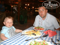 всё просто супер - голодными не останетесь!!! очень вкусно готовят! мы питались в основном на 2 этаже - там тихо, спокойно, мало людей - никаких очередей (в отличии от 1 этажа). и не воняет, как я читала в каком то отзыве. официанты всегда приветливы, улыбаются - спросят про напитки, и если вам нужно, то сами принесут!!! каждый день добавлялось что то новенькое , так что разнообразием в меню мы остались довольны!!! от их омлетов по утрам-я была просто в восторге!!! 3 раза ужинали на первом этаже (в беседке на свежем воздухе у бассейна). там готовят очень вкусное мяско!!! бифштексы и люля-кибаб. каждый день фрукты - яблоки, бананы, финики, а по вечерам дыни или арбузы. на обед вкусные супики, всегда разные. нам всё очень понравилось!