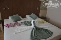 Номер был уютный, с балконом с видом на бассейн. Убирались, меняли полотенца каждый день; постельное белье, по-моему, через день, но всегда в номере была чистота. Каждый день пополняли мини-бар (для двухместного номера входили: 3 бутылки по 0,25 минералки, 2 простой воды, 1 кола, 1 фанта и 2 пива по 0,33). Горничные доброжелательные, улыбчивые. Также в номере есть сейф (платный 1,5 евро в день). А еще в номере есть телевизор, но только 2 канала русских ( 1 канал и планета.ру)Имеется кондиционер, но как только дверь балкона открыта, он автоматически выключается.