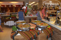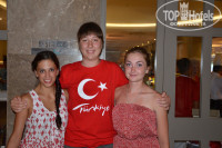 Еда. В первый день когда приехали просто глаза разбегались от разнообразия пищи! Охото было все попробовать! Очень много фруктов: черешня, арбузы, дыня, яблоки, слива. Большой выбор сладкого: различных тортов, пирожных и десертов. Огромный выбор мяса: и цыпленок, и курица, и рыба, и ягненок и.т.д Вообщем еда на высшем уровне! Официанты очень хорошие, и некоторые из них даже знали чуть русский язык. На обед и ужин, как только садишься сразу предлагают выбрать пить. Также можно посетить 2 раза бесплатно рестораны (забронировать можно на ресепшне, там стоит компьютер в виде банкомата) Мы посетили итальянский ресторан и барбекю. Очень понравилось
