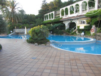 На территории 5 бассейнов, и для маленьких в том числе. Вечером какая то развлекательная программа, утром что-то типа фитнеса, занимаются с тренером. Шезлонги у бассейна 1 евро.