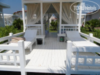 Павильоны. Вокруг павильонов ажиотаж. Меня Оксана с гест-релейшена заранее об этом предупредила, и я попросила забронировать павильон на всё время нашего отдыха. За что Оксане опять-таки спасибо. И, как оказалось, не зря я поторопилась. Все павильоны заняты. Сами павильоны мне понравились. Большие, чистенькие, функциональные, хорошо спланированные. Стоят на зелёной лужайке. Есть и открытая и закрытая часть павильона. Холодильник с напитками и мороженым. По утрам приносят термосы с кофе и чаем, фрукты. Часа в три дня сладости. Очень удивило, что нет доставки в павильоны обеда. Впервые такое вижу:- ( Учитывая стоимость 100 Евро можно было бы и организовать доставку обеда по меню, как это обычно в павильонах и делается. Обслуживание неплохое. Но неудобно то , что нельзя связаться с персоналом ,обслуживающим павильоны. Есть телефон, но по нему можно связаться только с рецепшен или гестрелейшен, а уж они как то свяжутся с персоналом обслуживающим павильоны . В-общем, этот момент отелю нужно доработать.