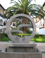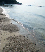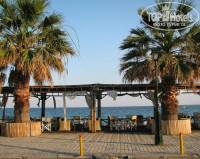Природа здесь красивая, много зелени. А вот про пляж ничего хорошего сказать не могу. Мне он совершенно не понравился - много людей, берег грязноватый, вход в море каменистый. Без тапочек здесь не обойтись. А вот если вправо пройтись пол часика, набредете на косу - вот это настоящий райский уголок - берег песчаный, чистый и мелкий. Моя малышка называла его детским плажем. Правда, ходить туда каждый день было тяжеловато, поэтому мы просто шли по бережку несколько минут. Через пару метров гряда отельных пляжей кончалась и далее берег был абсолютно свободный. Мы выбирали местечко с песочком и без камней на берегу.