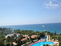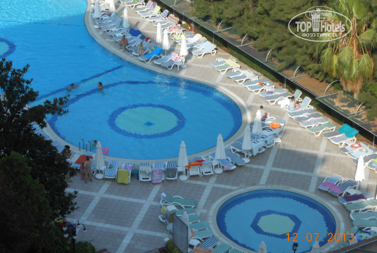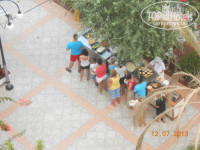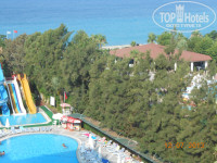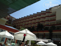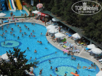Территория отеля не большая, это и плюс и минус. Плюс в том, что дети все время на виду, далеко не убегут, т.к. просто некуда, минус. Что после 3-4 дней, жизнь в отеле напоминает "День сурка". Завтрак, бассейн, снек бар, море, и так по кругу. Территория ухоженная, везде цветочки, зелень. На первом этаже стоит два стола для пинг-понга (играть можно бесплатно), два стола для минифутбола (довольно раздолбанные), и два бильярдных стола, на одном сукно с дыркой (ни разу не видел чтоб кто-то играл в бильярд). Так же есть три бассейна. Один мелкий, 40см глубина, для детей. Один для взрослых, с тремя уровнями глубины, от по пояс, до по шею. И один с горками. На территории три горки. В общем к территории особых претензий и притязаний нет.