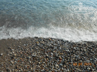 Пляж галечный, и галька эта как раз самого неудобного размера :) Меня это не пугало, т.к. привычный к крымским галечным пляжам, но тут я ошибся. Заход в воду ужасный, без специальных тапков довольно больно заходить (до сих пор ступни болят). Но камни не острые, как некоторые пишут. Пляж маленький. Если вы попали в высокий сезон, и заполненность отеля больше чем 50%, то найти с утра свободный лежак будет проблемой (после обеда обычно находятся). Люди занимают лежаки с 7ми утра уже. Как возле бассейна, так и на пляже. Причем часто и там и там. Так и ходишь, вокруг лежаков на которых разложены полотенца, и на которые в течении всего дня так никто и не появился.