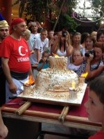 Когда мы прилетели, отель был на 90% заполнен поляками и чехами. Поведение от соотечественников не отличаются, так же много пьют и нагребают кучи еды. Через три дня был русский заезд, что отразилось только на количестве русской речи вокруг. Откровенно пьяных я не видел. Но после заезда, отель заполнился наверное процентов на 80-90, вот тогда то и понимаешь, что попал почти в "Крым" - очереди, стоячие места на пляже и у бассейна. В 8 утра у бассейна и на пляже, уже на всех лежаках лежат полотенца, типа место забито. Если прийти в ресторан через пол часа после начала завтрака, обеда или ужина - то достанутся только огурцы с помидорами. Через неделю много уехало, и сало горазда свободней. Много мест, и в очереди не 30 минут стоять, а всего 10.