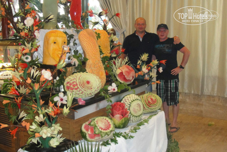 Очень всё понравилось (совершенно всё)! В Турции не в первый раз. Заехали в отель в 9 ч 30 мин. Заселили без проблем, тут же. Успели на завтрак, переоделись и на пляж, а там шаурма! Практически целый день всякие игры, аниматоры могут поставить игру на 5, несмотря на разность языков у игроков. В результате получается как бы сплочённый коллектив. В первый день сходили в хамам, ни куда не ездили, очень понравилось. Вещей надо брать с собой на один день. От отеля ходит бесплатный автобус на рынок. Хотя за 30 минут можно дойти пешком, но автобус ходит через каждые 30 минут (по утрам и вечером), расписание в автобусе. В отеле тоже есть бутики и выбор. Пока ожидали автобус, перед отъездом, потратили немного денег оставленных для duty free! Сейф в номере платный, но считаю, 1 евро в сутки не страшно. Еда! Прежде чем класть что-то в тарелку, нужно пройти круг по ресторану, чтобы определиться в выборе. Короче всё Супер с большой буквы!