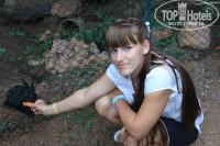 Это просто волшебство - ботанический сад. Птицы поют как в раю. Территория утопает в зелени, все цветет и пахнет. Все в цветах, ухожено, всегда поливается и подстригается. Ползают черепашки и ящерицы. Бегают гуси и белки. Для ребенка столько радости)))) В детском клубе есть вольер с зайчиками, которых можно кормить. Есть клетка с птицей.